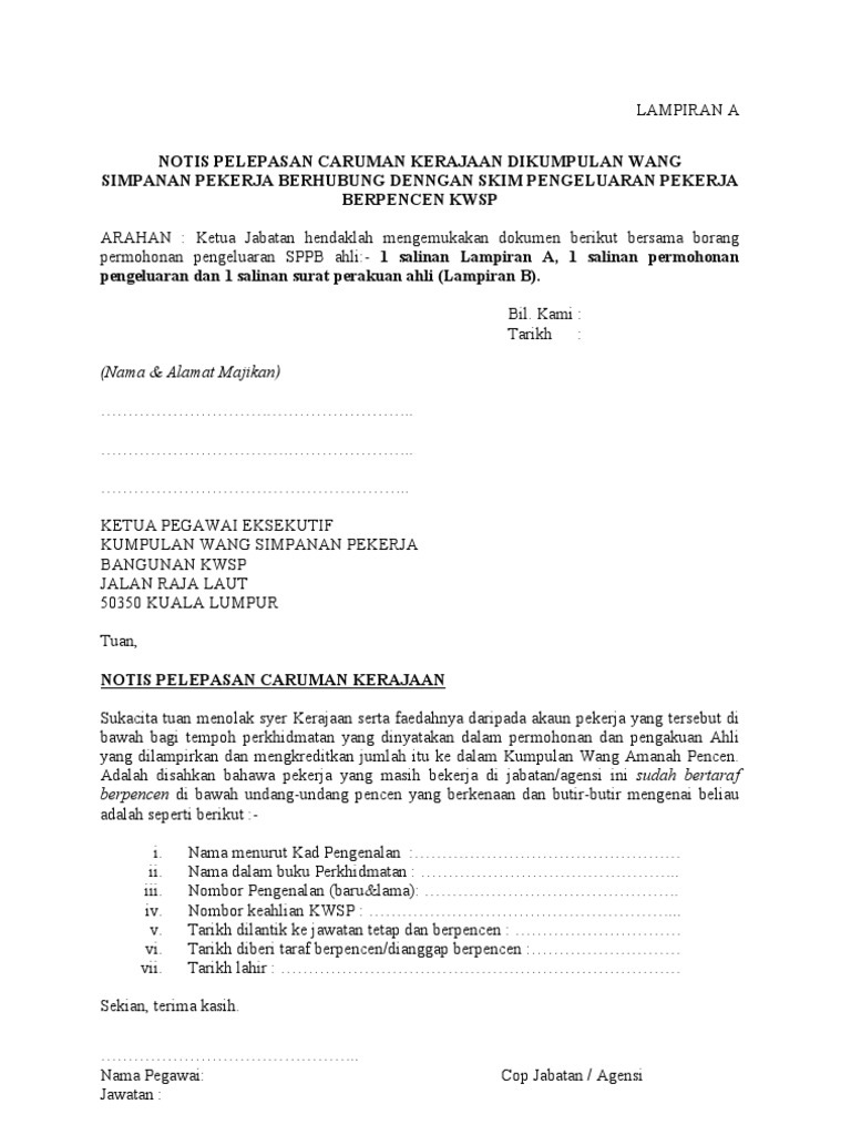 Borang Pengeluaran Kwsp Bagi Taraf Berpencen