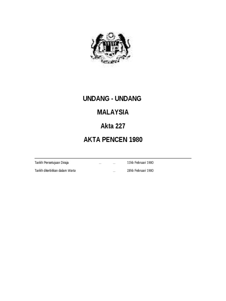 Akta Pencen Pihak-Pihak Berkuasa Berkanun Dan Tempatan 1980 Akta 239. Senarai semak pemberian taraf berpencen manahasie. Pekeliling perkhidmatan ini hendaklah berkuat kuasa mulai 1 Januari 2015.